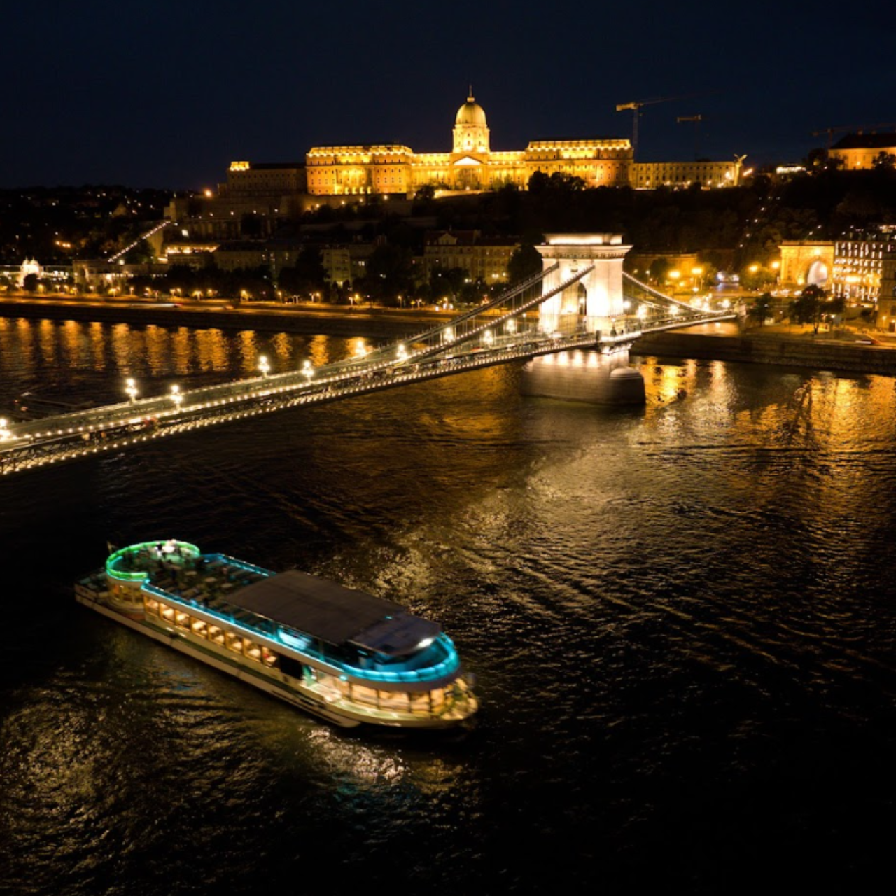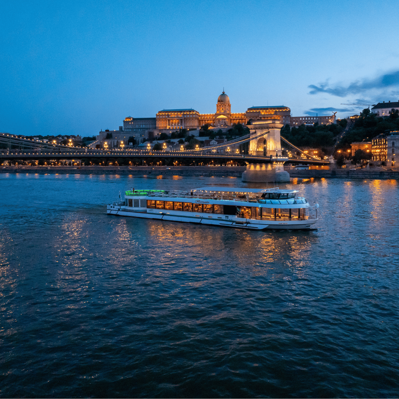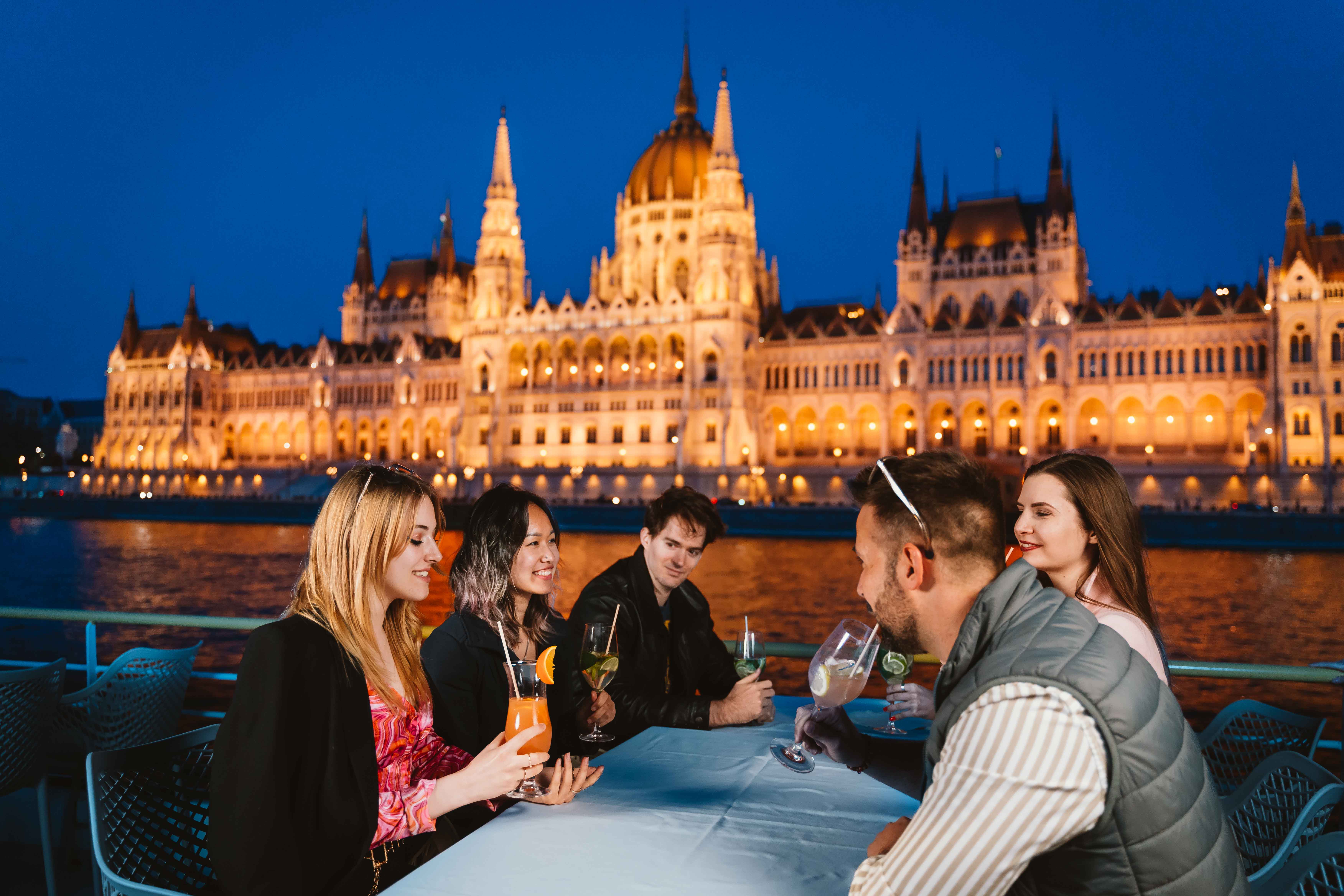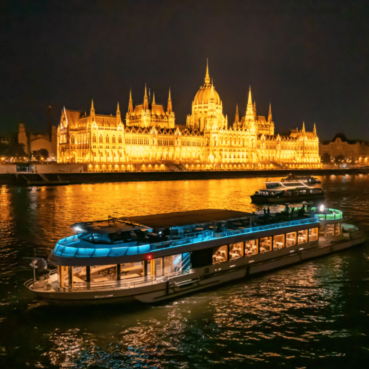 The price of the dinner boat cruise includes a two-hour scenic cruise on the Danube, a four-course dinner with a choice of traditional Hungarian or vegetarian menus, live music performed by a traditional gypsy band, and a Hungarian folk dance show — all enjoyed from a beautifully set table with full service and panoramic views of Budapest’s most iconic landmarks.