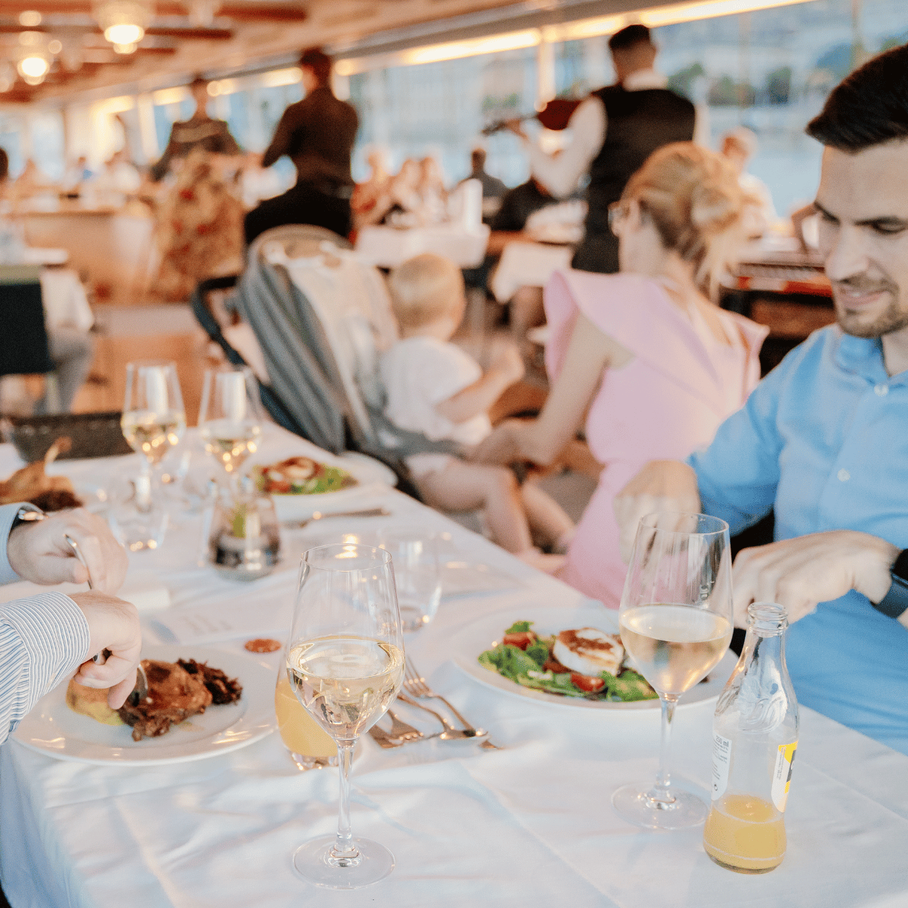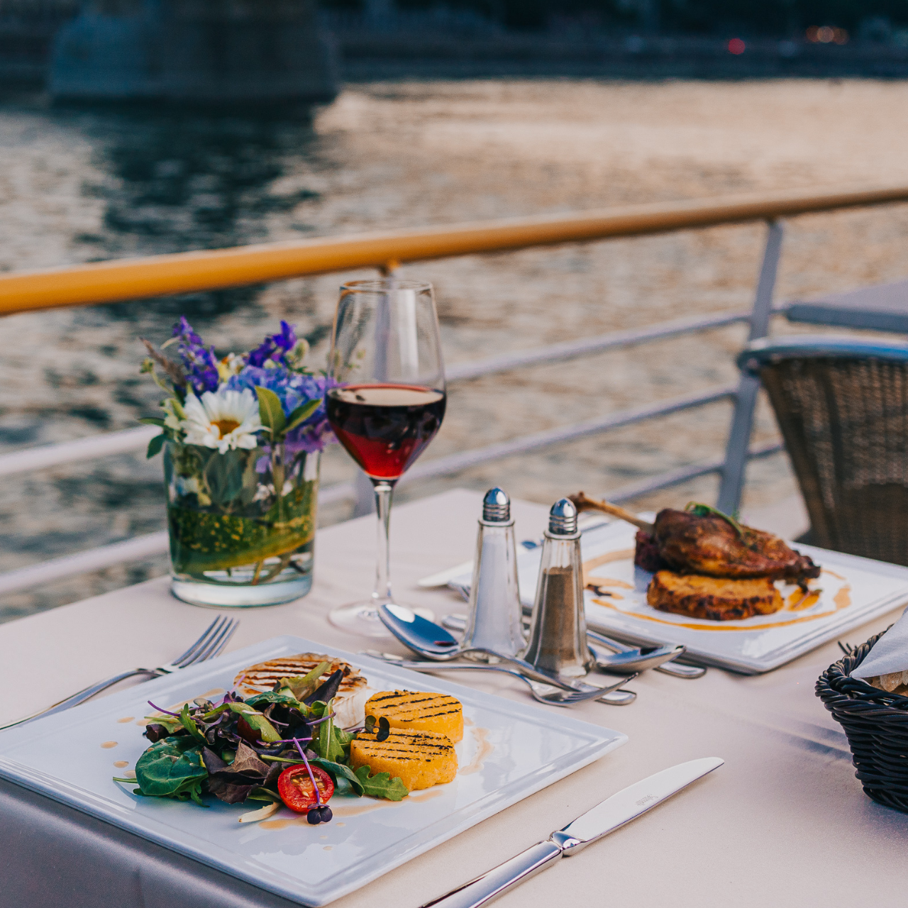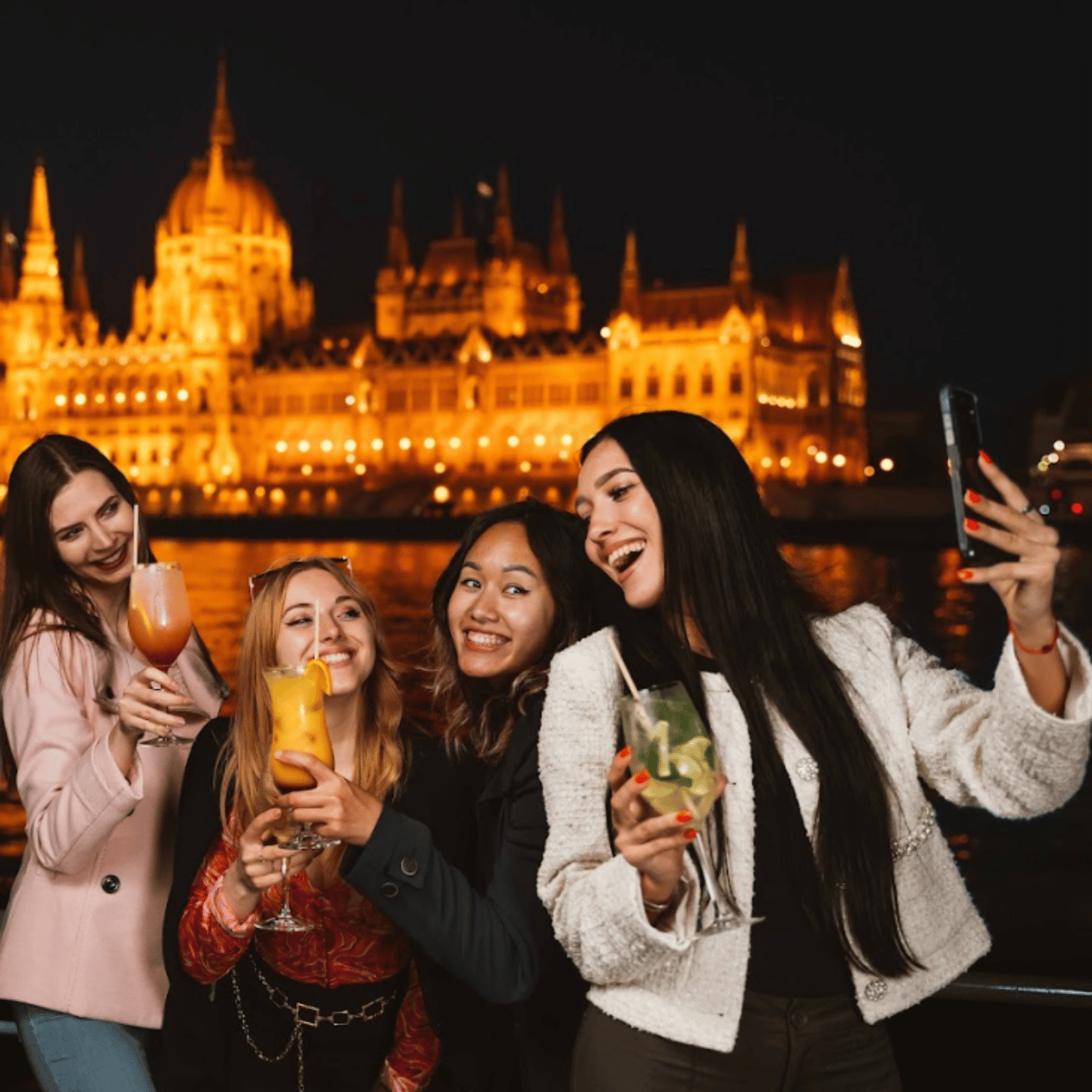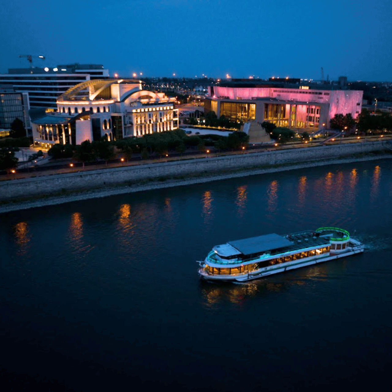 The price of the dinner boat cruise includes a two-hour scenic cruise on the Danube, a four-course dinner with a choice of traditional Hungarian or vegetarian menus, live music performed by a traditional gypsy band, and a Hungarian folk dance show — all enjoyed from a beautifully set table with full service and panoramic views of Budapest’s most iconic landmarks.